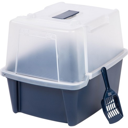 Iris Usa Top Entry Cat Litter Box With Scoop White Body Black Lid Target