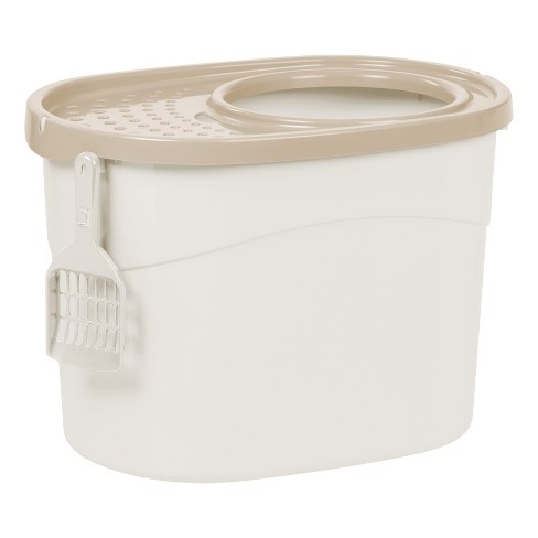 Iris Usa Top Entry Cat Litter Box With Scoop White Beige Target